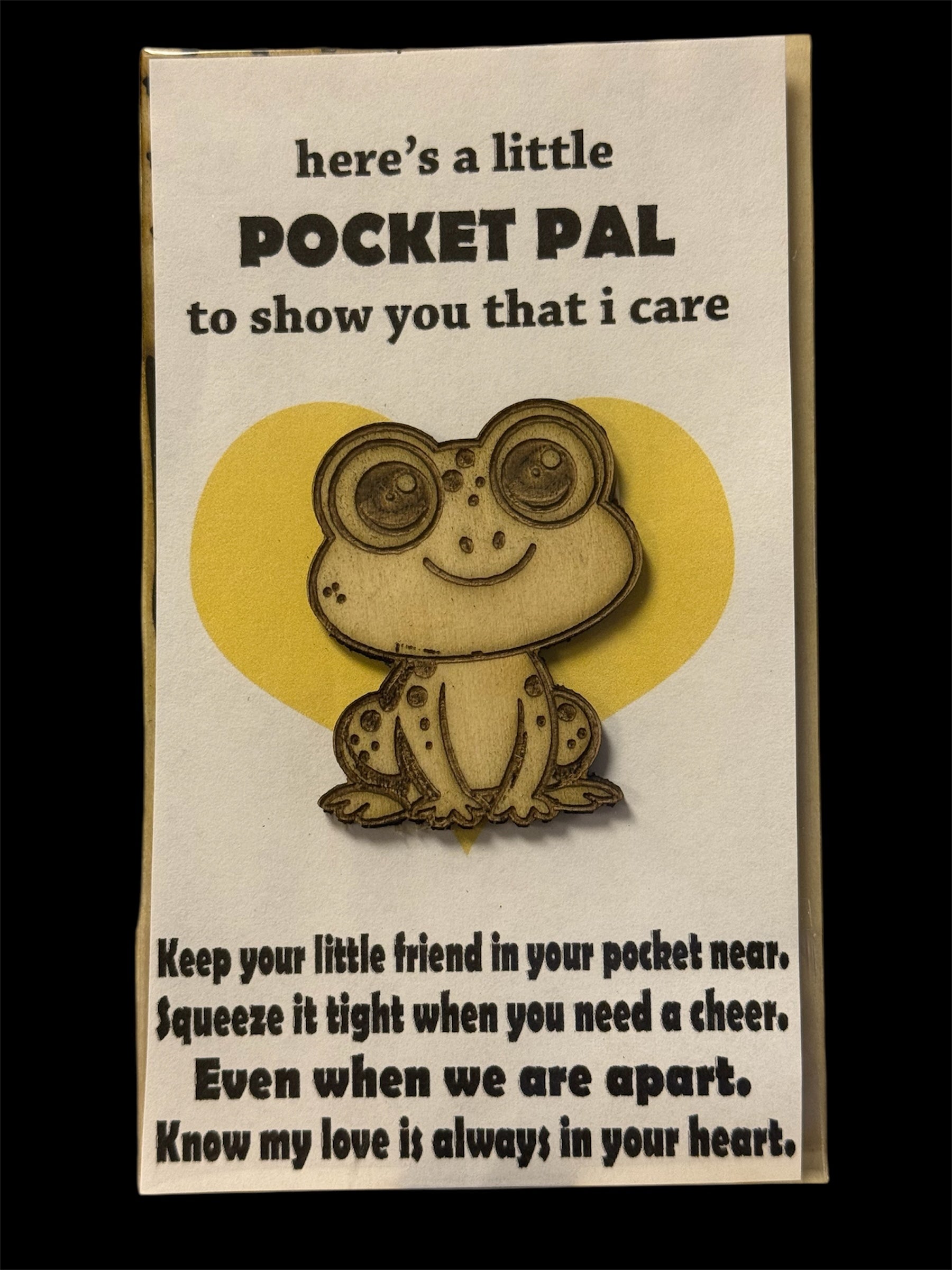 This little pocket pal is engraved on wood. Perfect size for little hands. Telling your loved one you are with them always. About 2 inches in size.